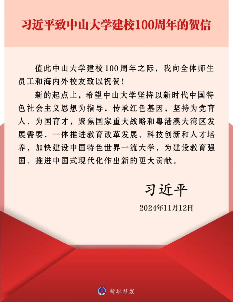 新时代新征程,中山大学扎根粤港澳大湾区,围绕立德树人根本任务,主动服务国家战略,加快建设中国特色、世界一流大学,力争为以中国式现代化全面推进强国建设、民族复兴伟业作出新的更大贡献。